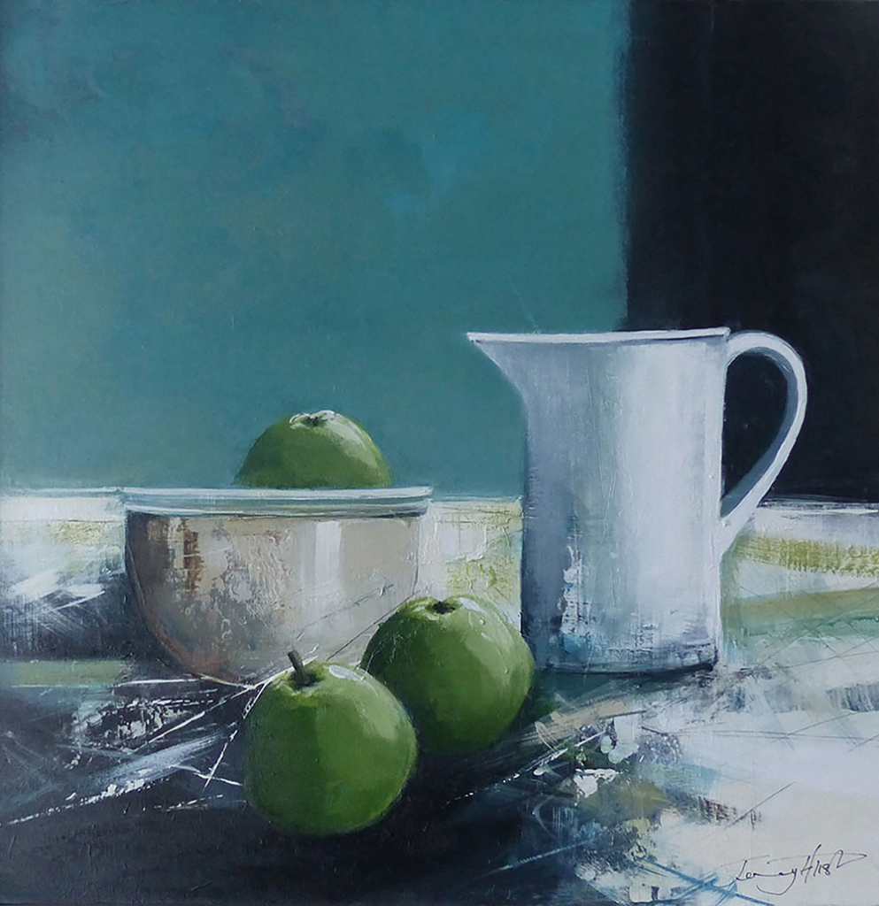 “Still Life with Green Apples” Acrylic on board 40cm x 40cm