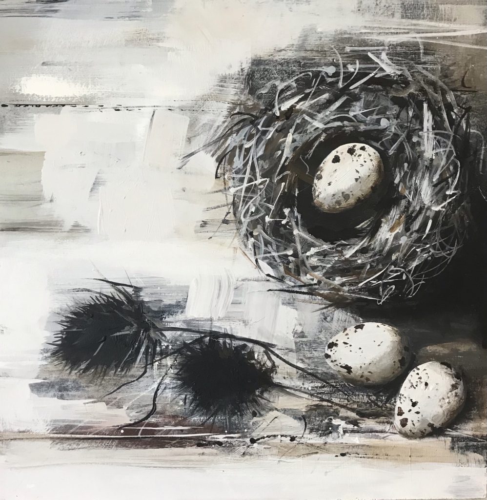 “Still life with nest and teasels”Acrylic on panel 30xm x 30cm